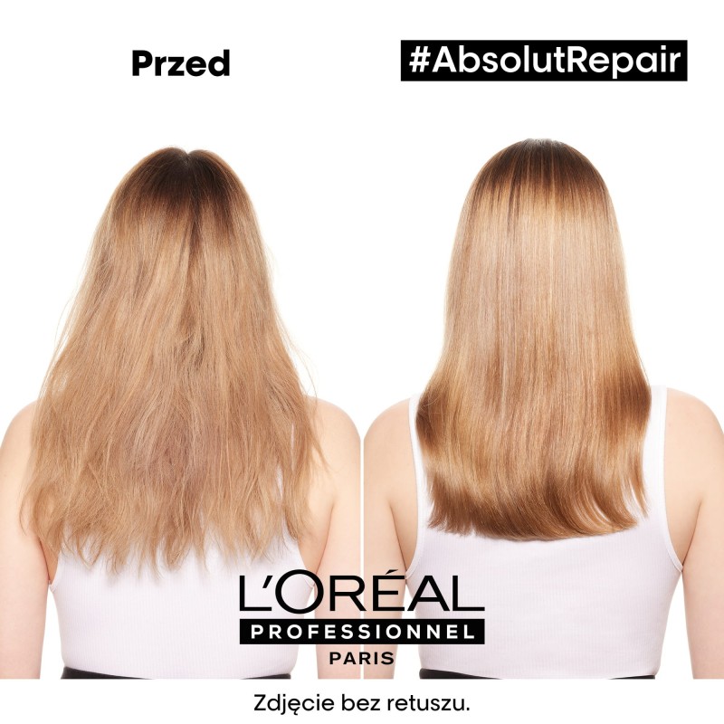 Odżywka Serie Expert Absolut Repair od L'Oréal Professionnel umożliwia włosom regenerację bez efektu obciążenia. Włosy są odżywione i wygładzone na powierzchni, bardziej błyszczące a ich wygląd zdrowszy.